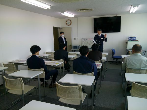 4月14日(火)、北日本自動車学校において、事業所の新入社員等を対象に、ドライビングスクールを実施。富山西署交通課長から事故の発生状況等を説明した後、飲酒運転の疑似体験やながら運転を再現したコース実走等を通して、危険を体験するなど、安全運転の大切さを再認識した。