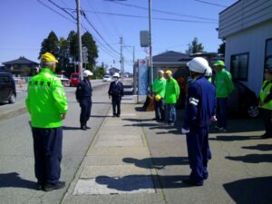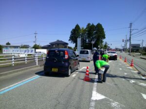 4月12日(日)、県道富山八尾線黒田地内において杉原支部(支部長 坂田諭治)が呼びかけ運動を実施。支部役員及び交通指導員参加の下、チラシとミネラルウォーターを配布し、ドライバーに「安全運転」の一声をかけました。