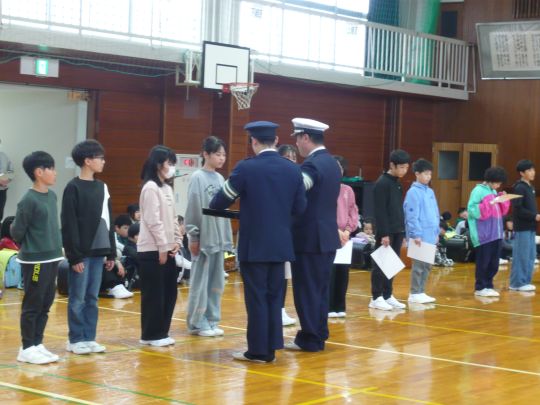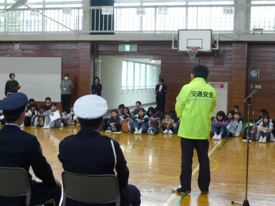 交通安全協会相ノ木支部員と同校の安全見守り隊員の対面式も行われました。