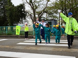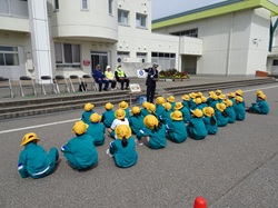 4月13日(月)午前9時30分から約1時間、射水市立作道小学校において、同校1年生の交通安全教室が行われました。参加児童は警察官の話を聞いた後、小学校前の交差点や横断歩道で横断歩行練習を行いました。当協会作道支部(支部長:尾曲龍之介)の役員は、射水市や射水警察署等関係機関と共に参加しました。