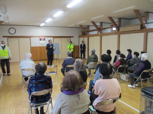 4月7日(火)地蔵町公民館において高齢者交通安全教室を開催し、20名が参加しました。新井地域交通係長と氷見市のシグナルリーダーの講話をとおして交通事故防止を呼びかけました。