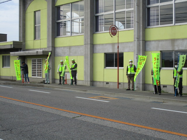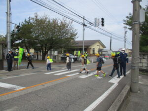 4月20日(月)午前7時30分から、富山市太田地内の富山市立太田小学校前道路において、富山南警察署太田地域支部が企画した交通安全キャンペーン「交通安全ピッカピカ一年生みまもり大作戦」が行われました。同キャンペーンには、富山南警察署員、太田地域支部役員、長寿会連合会会員等約30人が参加し、交通安全啓発旗や横断幕を掲げて、通行車両の運転手さんに、交通事故防止を呼びかけました。また、通学途中の中学生や小学生等には、交通事故防止を願って一人一人に声かけしました。